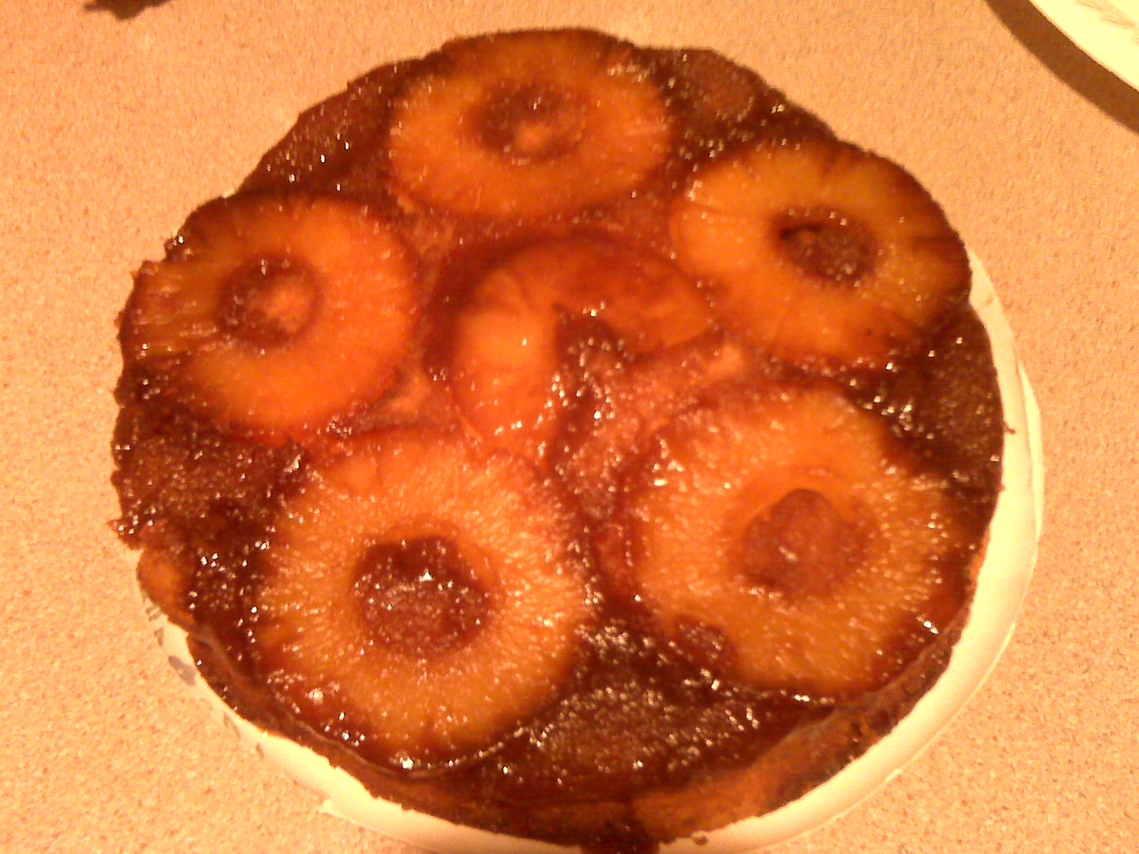 Another one of my coworkers was leaving the company and so I asked “What kind of going away cake would YOU like?” The response: pineapple cake. So I looked up about five different recipes for pineapple upside down cake and read people’s comments and suggestions and ended up drafting my own recipe. My version had coconut flakes AND coconut milk, and the sugary crust at the bottom (err… top) was superb. I made 2 cakes, but there was still extra batter so I grabbed the cupcake pans and made…. *drumroll please* coconut-pineapple upside down CUPCAKES! These were a bigger hit than the cake, and the cake turned out tasty, moist and damn good. It’s not much to look at, but tastewise…. definitely one of my best.